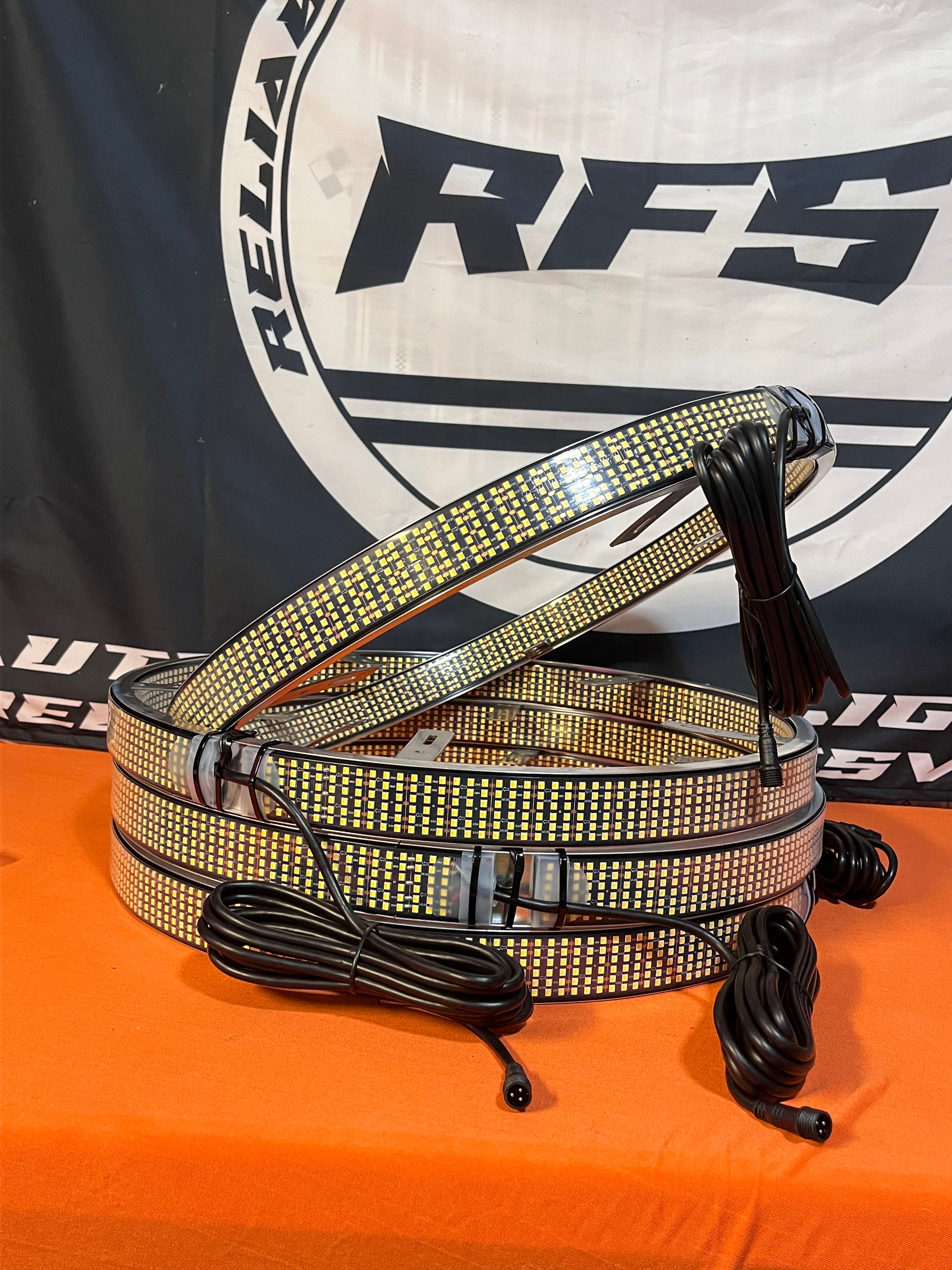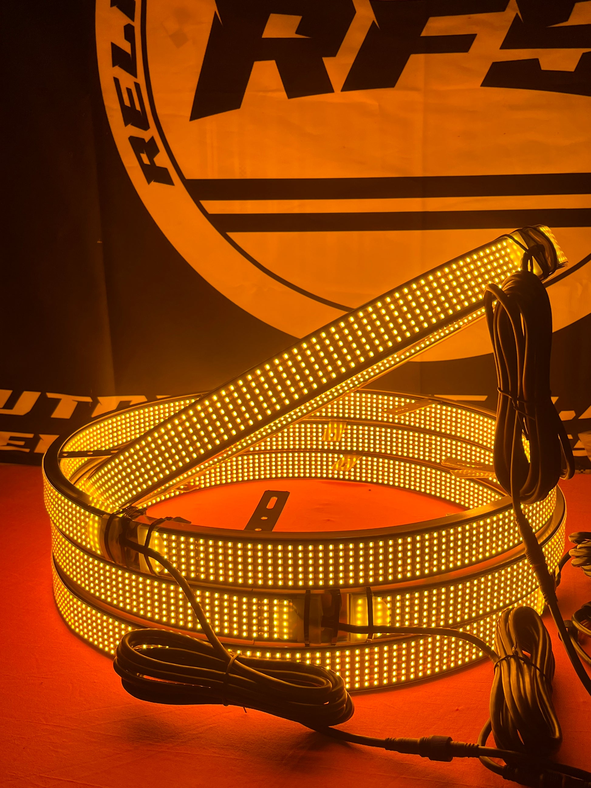 - (4) 17.5” 12 row sequential switchback prebuilt wheel lights with 11ft of wire lead per light