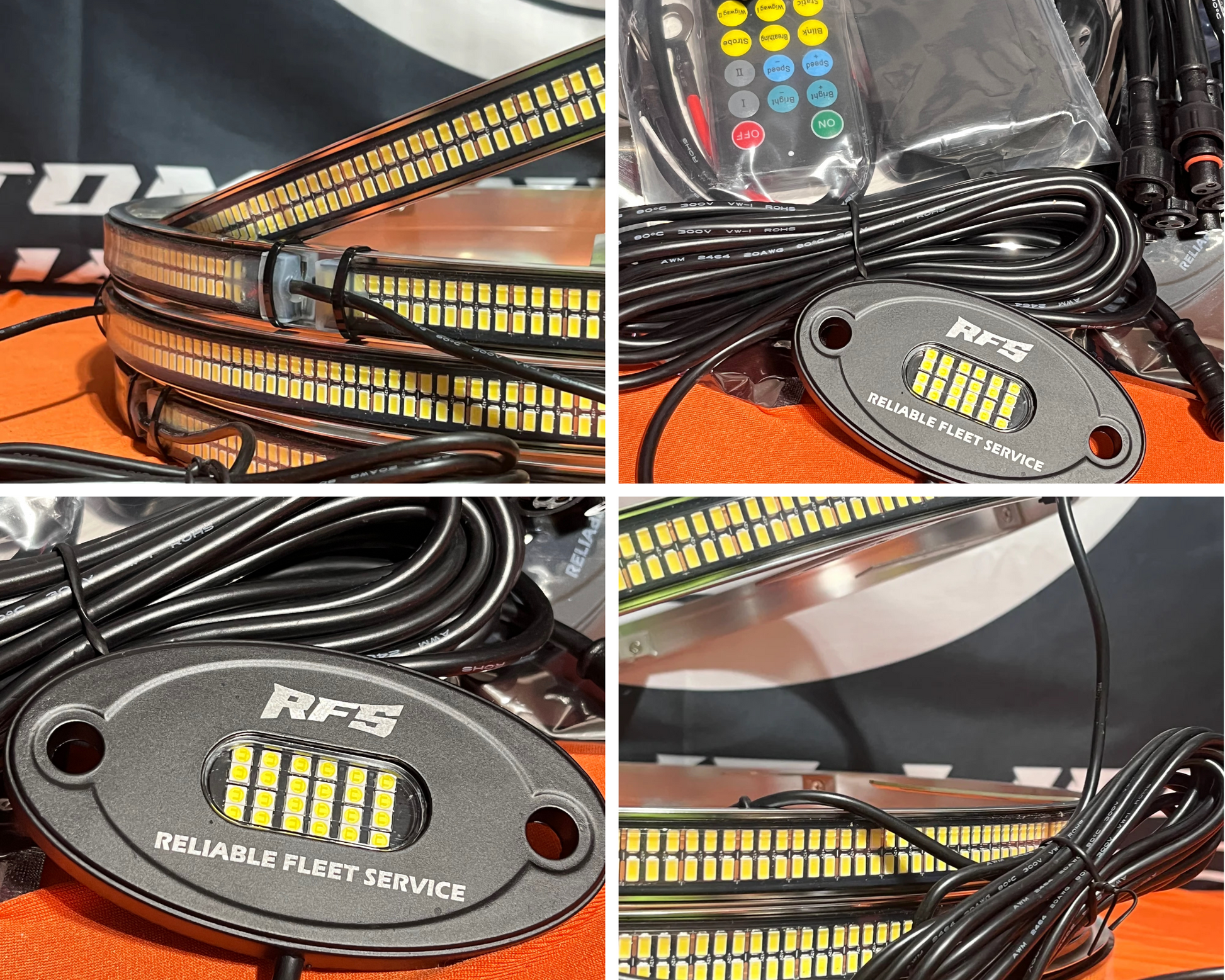 These Rock Lights are Remote Controlled and App Controlled. Choose to run these Rock Lights in Solid White. Comes pre built in with 6 Different modes to make sure your ride stands our no matter where you are