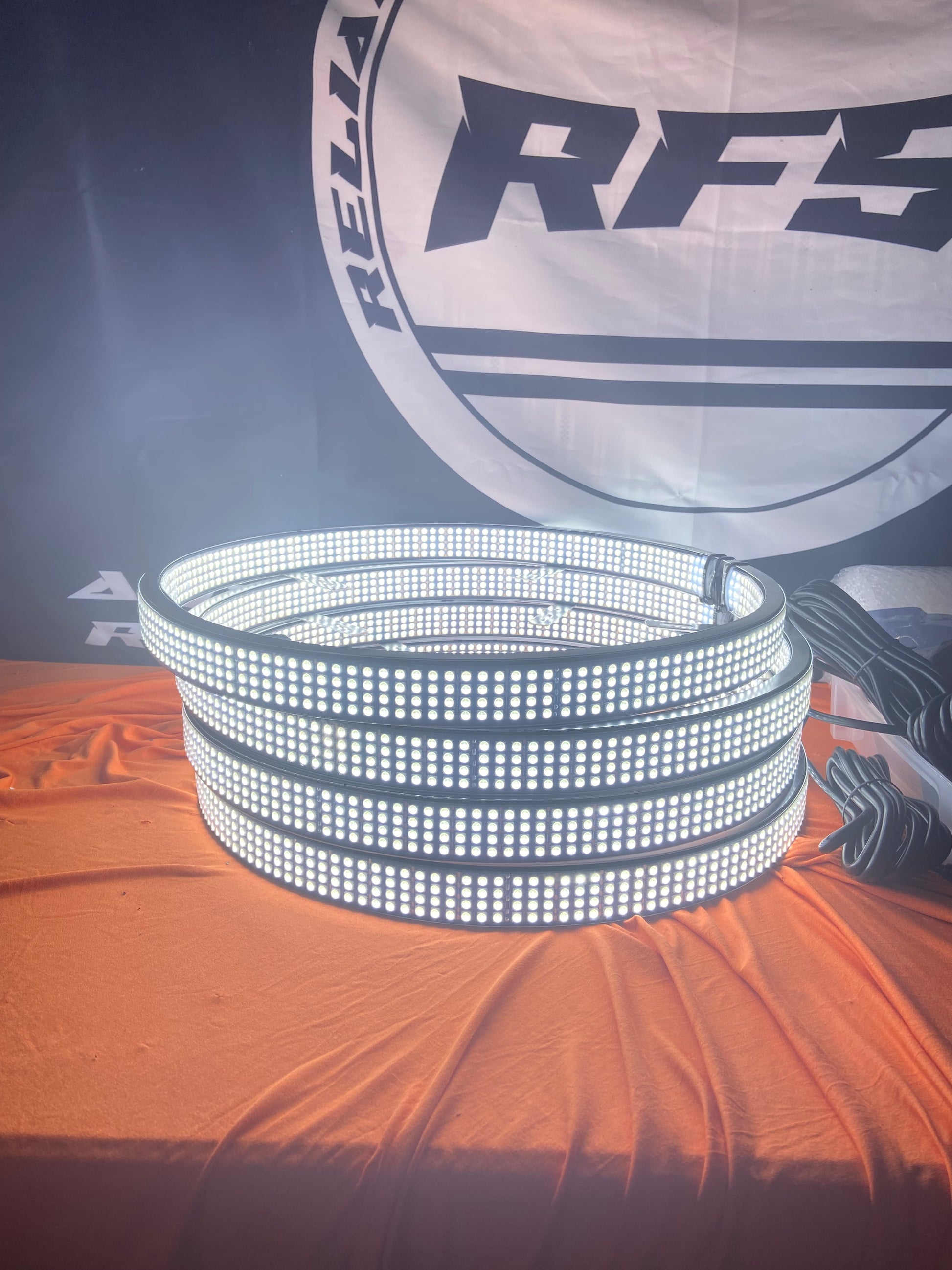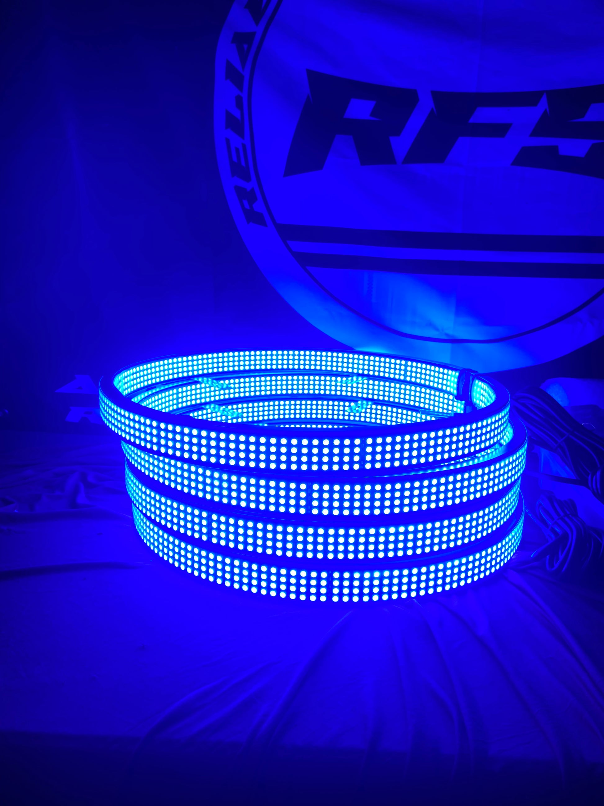 - (4) 17.5” 8 row RGB+W High Intensity prebuilt wheel lights with 11ft of wire lead per light